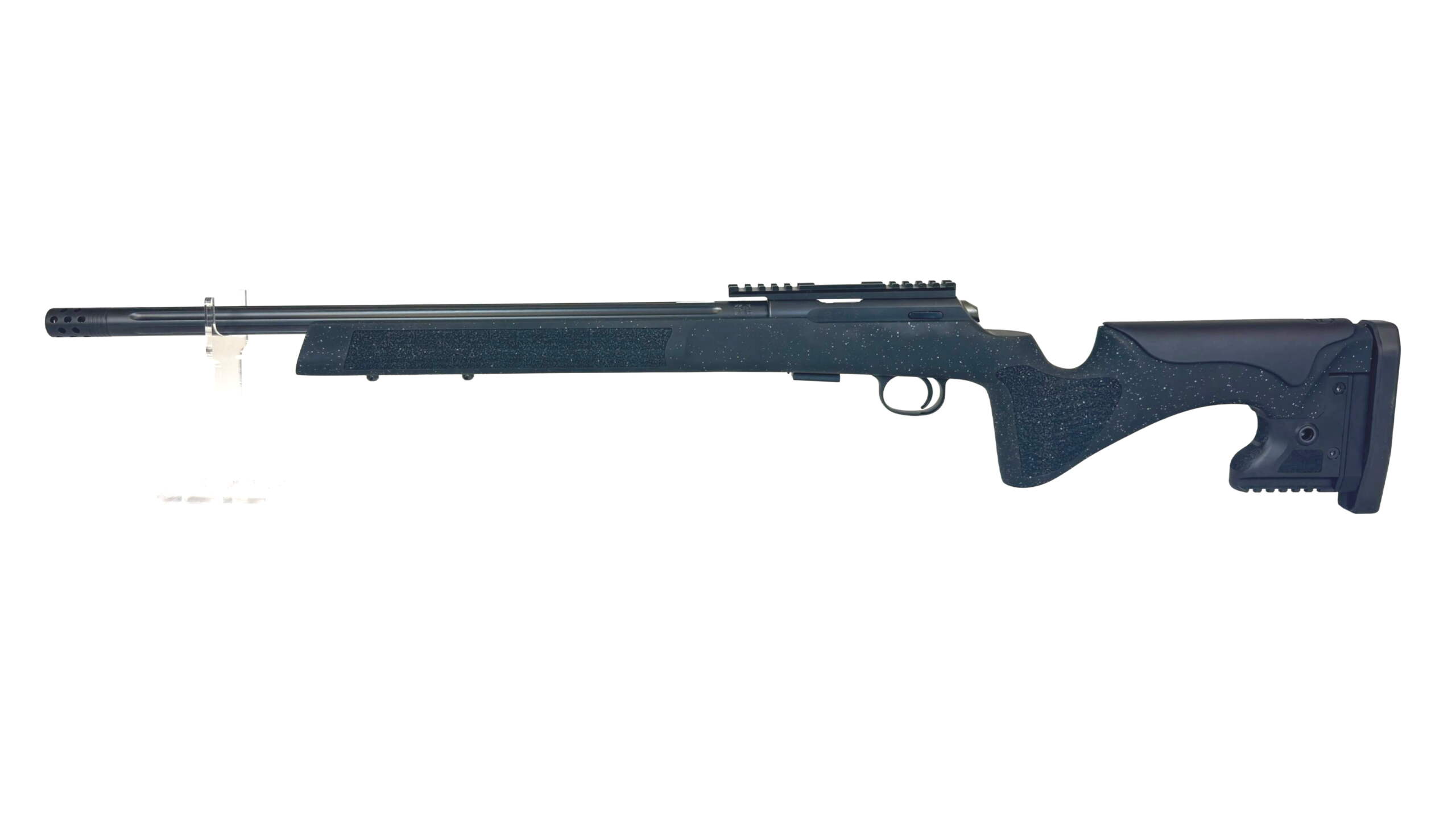 Präzisionsgewehr mit kanneliertem 20-Zoll-Lauf und integriertem Kompensator für reduzierten Rückstoß und stabile Schussabgabe. Das Match-Patronenlager sorgt für hohe Genauigkeit auch auf weite Distanzen.